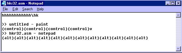 Below is an example of the HKR32.ASM file. It shows the user's logged keystrokes: