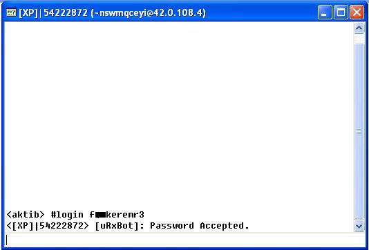 To be able to gain access to the backdoor, the remote user must login to the channel and type the password: