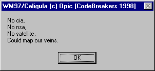 WM97/Caligula (c) Opic [CodeBreakers 1998] No cia, No nsa, No satellite, Could map our veins.