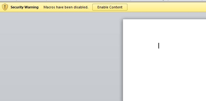 Notification message in Word asking users to enable macros