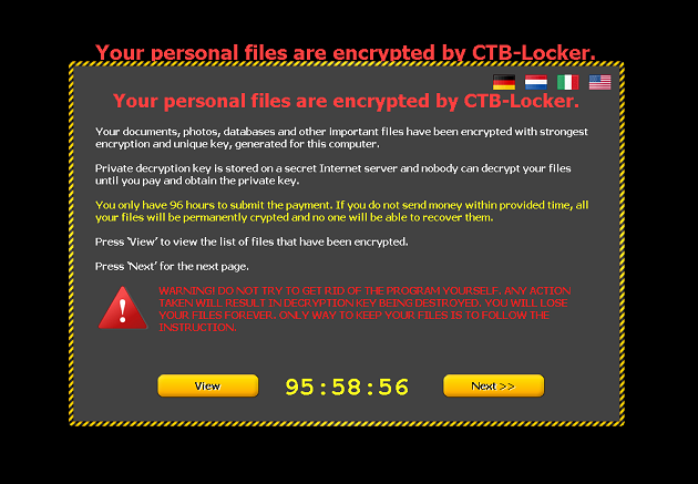 F-Secure Weblog: the ransom notice displayed by CTB-Locker crypto-ransomware.