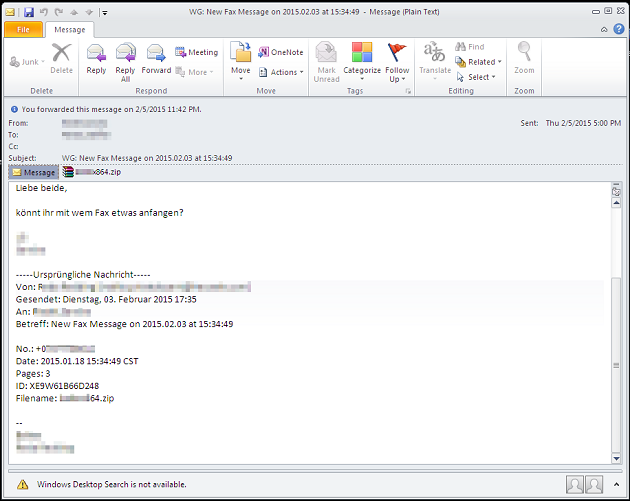 Users most commonly come into contact with crypto-ransomware via files or links that are distributed in email messages: