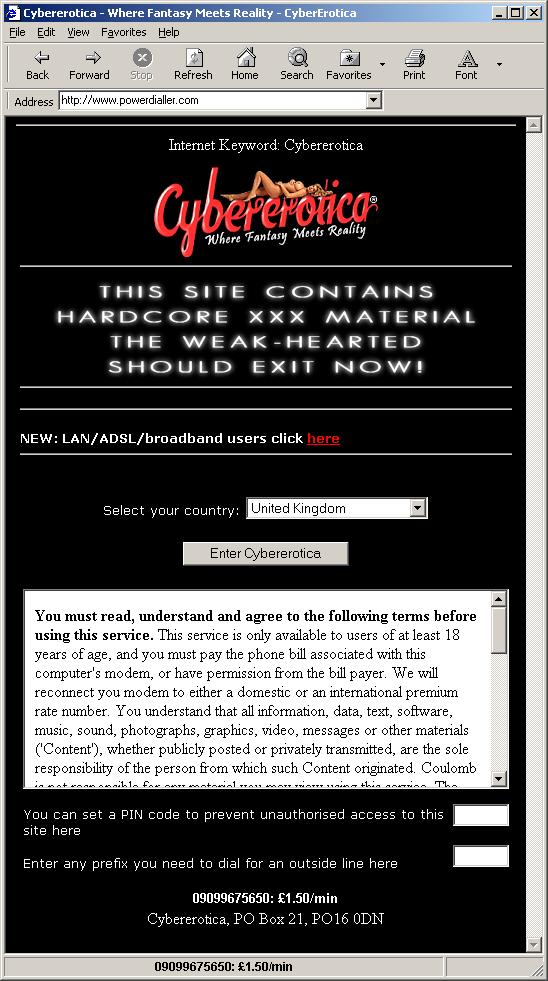 The AdultBrowser dialer family connects users to a pornography website via a premium-rate telephone number.Upon execution, it displays a HTML user interface in the web browser. An example of the HTML user interface is as follows: