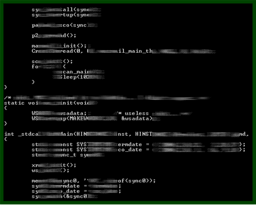 One of Doomjuice's payloads is that it drops the source code of Mydoom.A in a bzip2 compressed TAR archive. The file is dropped the root of all hard drives and the user's profile directory as 'sync-src-1.00.tbz'.