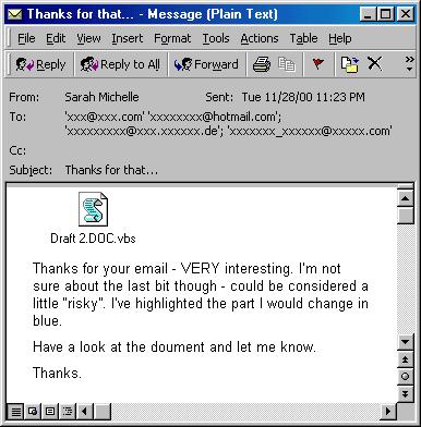 VBS/Draft is a mass mailing email worm written in VBScript.