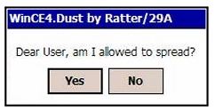 Duts is a parasitic file infector virus. It is the first known virus for the PocketPC platform. Duts affects ARM-based devices only.Duts is a 1520 bytes long program, hand written in assembly for the ARM processor. When an infected file is executed the virus asks for permission to infect: