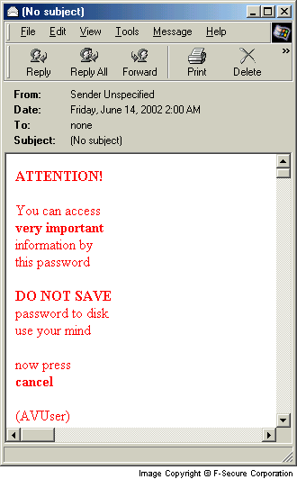 ATTENTION! 	You can access 	very important 	information by 	this password 	DO NOT SAVE 	password to disk 	use your mind 	now press 	cancel 	([infected user name])