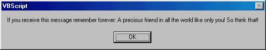 If you receive this message remember forever: A precious friend in all the world like only you! So think that!