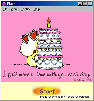When the worm file is run (double click on attached EXE file) it displays the following picture: