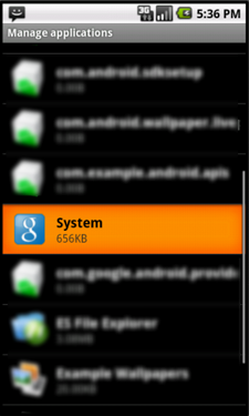 SpyEra.A places no visible icon on the application menu, but its presence is revealed with a quick look under the 'Manage applications' in Settings.