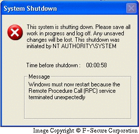The worm might try to exploit Windows XP machines with Windows 2000 exploit. In many cases the worm causes XP machines to start rebooting periodically with this error message: