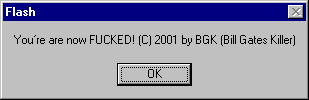 When the worm is run it shows a dialog box that looks like a ShockWave Flash executable animation's dialog. The dialog looks like: