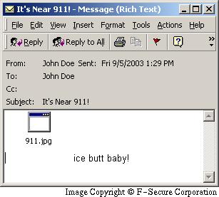 Subject: It's Near 911! Body: Nice butt baby! Attachment: nerosys.exe