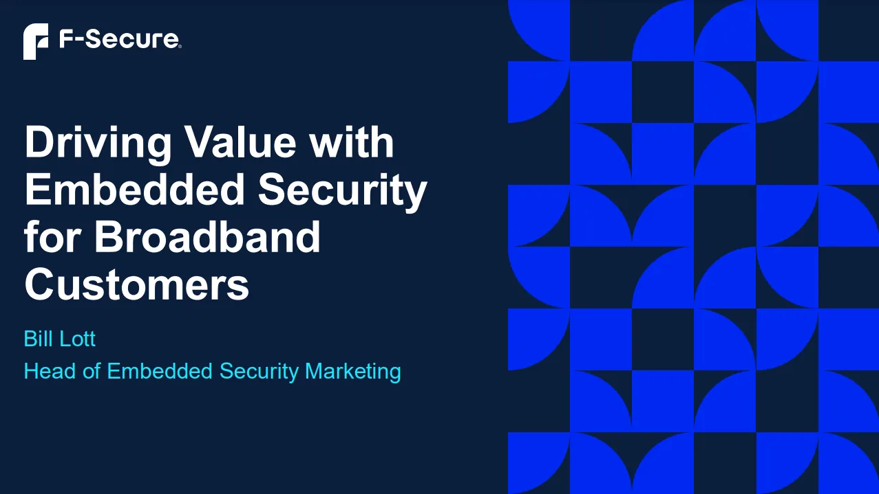 Bill Lott is a product marketing leader with a proven record in launching innovative tech solutions. He played key roles in launching both AT&T’s online advertising and First Data-Microsoft’s billing ventures. Now, he leads the go-to-market strategy for F-Secure's industry-leading embedded security portfolio, driving its success in the cyber security market.