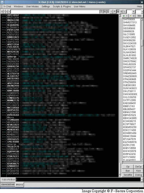 We have been monitoring the IRC network created by Novabot. During last 10 hours of 22nd of January, we saw close to 3000 bots from different IP addresses joining the attack network (although no more than 1000 of them can be accessible at a time as the IRC server has a thousand user limit). Around 21:00 GMT the IP address of the IRC server changed to 0.0.0.0 - making the server inaccessible. Before this we witnessed a person actively sending commands to the bots over the IRC channel. We will continue to monitor the situation.