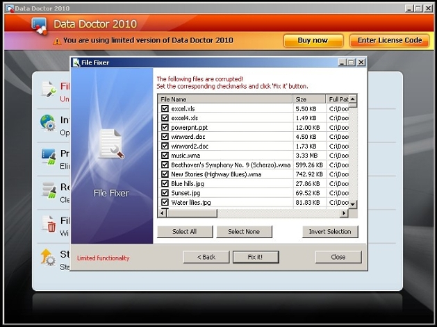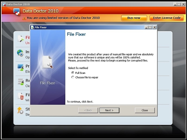 Once DatDoc is downloaded onto a system, the separate DatCrypt malware will launch DatDoc's installer. The installation process for the product requires the user's interaction.When using the utility to decrypt files, the user has the option of performing decryption on a single file, or on multiple files (full scan):