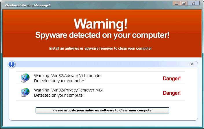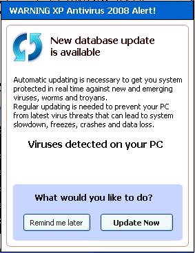 XPAntivirus variants display the following types of warnings: