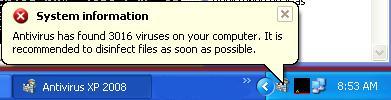 XPAntivirus variants display the following message from the System Tray: