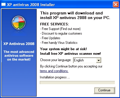 Rogue:W32/XPAntiVirus is distributed and installed with interfaces similar to the following: