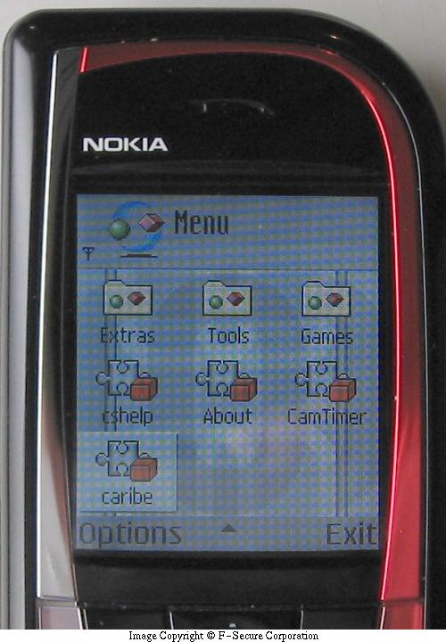 If Skulls.B is installed only the calling from the phone and answering calls works. All functions which need some system application, such as SMS and MMS messaging, web browsing and camera no longer function. And in addition of applications being disabled the phone is also infected with Cabir.B, which fortunately, is not able to activate automatically.