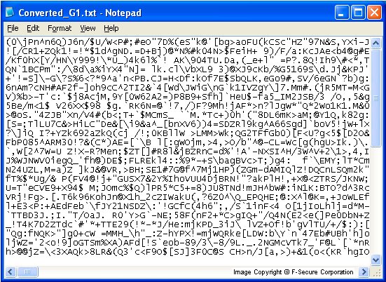 If a user clicks 'Yes' button, the worm creares the converted_<filename>.txt file where <filename> is the name of the worm's file. The worm writes random garbage to that file and opens it with Notepad:
