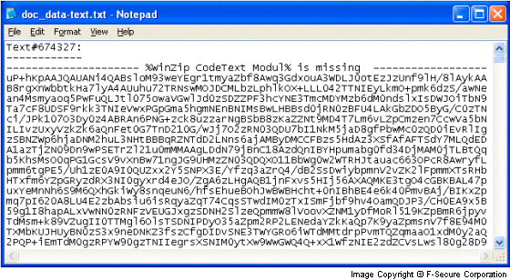 When the worm's file is started it opens Write text editor with the following text as a decoy: