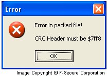 When the worm's file is started it shows a fake error messagebox as a decoy: