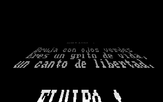 The text is displayed on a screen which contains an animation of flames. The text seems to refer to a famous speech given by Dolores Ibarruri, a Spanish freedom fighter. She said the famous "No Pasaran" ("They shall not pass") phrase in her radio speech in 1936.