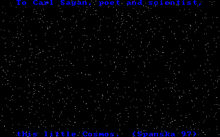 To Carl Sagan, poet and scientist,this little Cosmos. (Spanska 97)