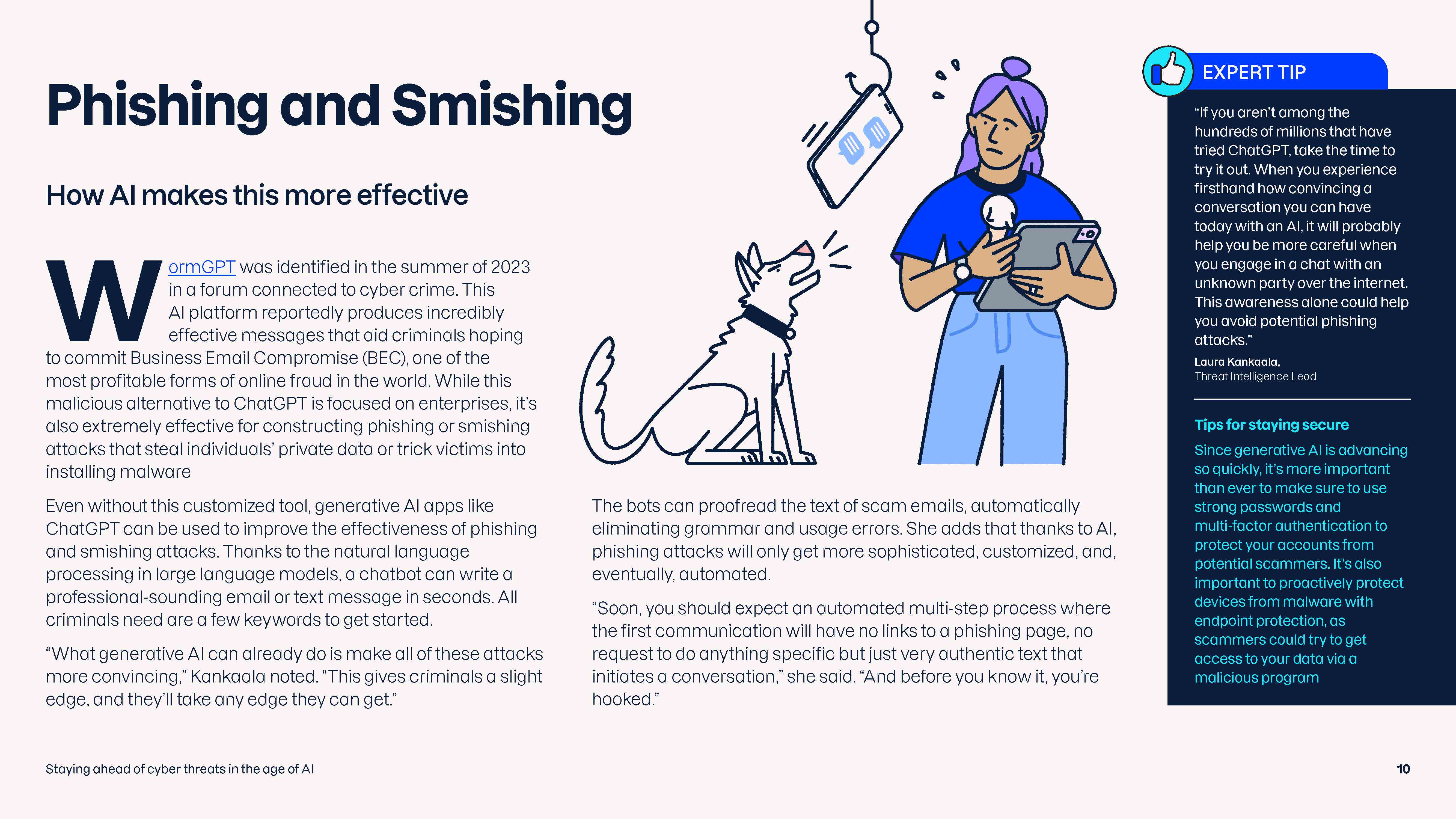 Generative AI will make the common cyber threats like phishing, smishing and even ID theft even more convincing. Laura Kankaala, F‑Secure’s Threat Intelligence Lead, explains more and gives expert tips on improving your security and staying ahead of threats.