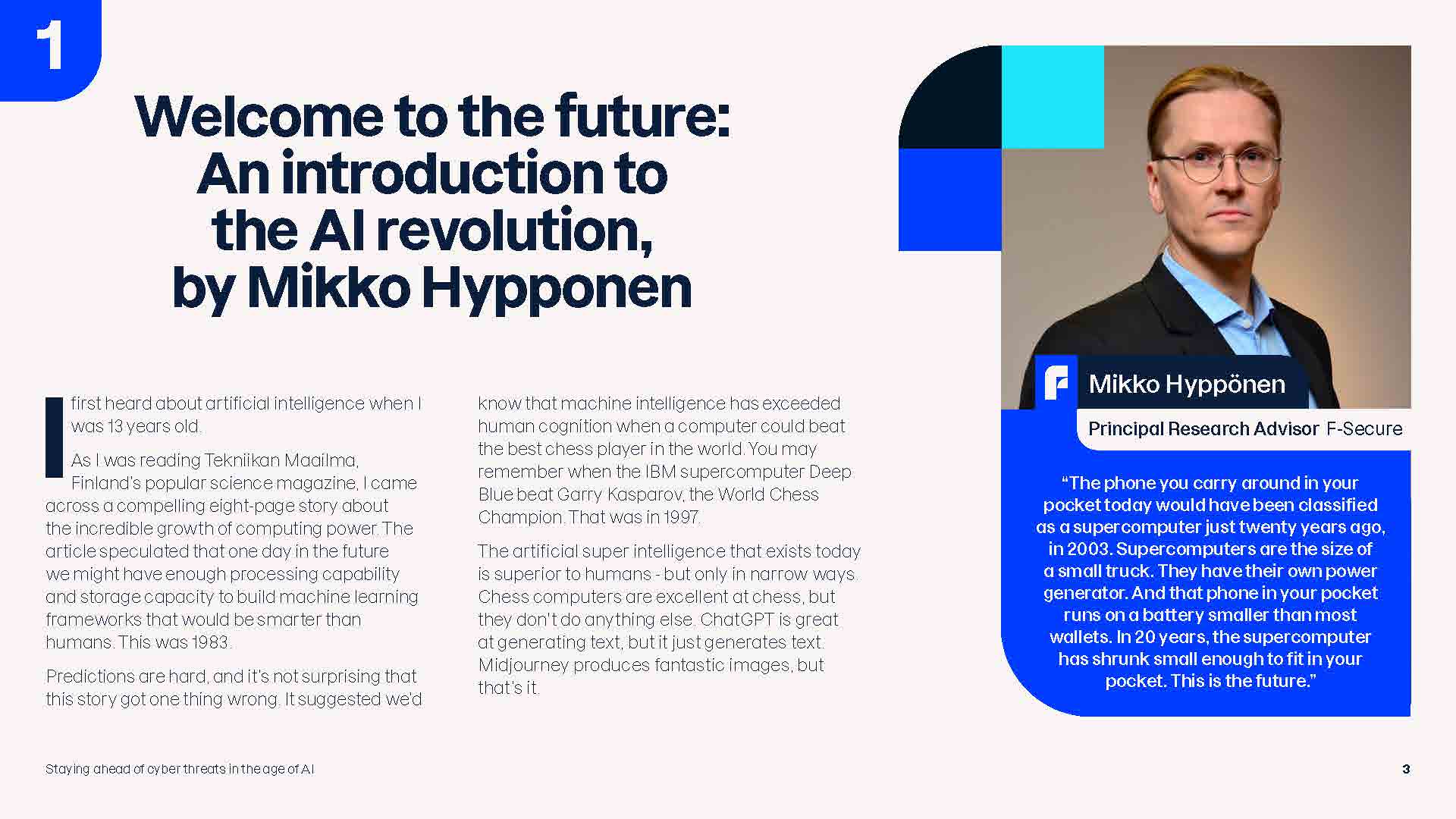 Mikko Hyppönen, F‑Secure’s Principal Research Advisor, speaks to the emerging AI landscape, and what the current developments mean for our society as a whole.