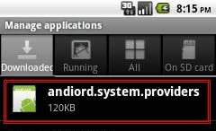 Users may detect its presence by checking the "Manage applications" menu under Settings for the application name andiord.system.providers: