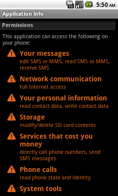 The trojan requests the following permissions: