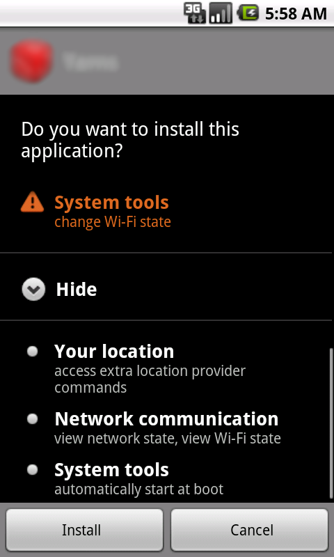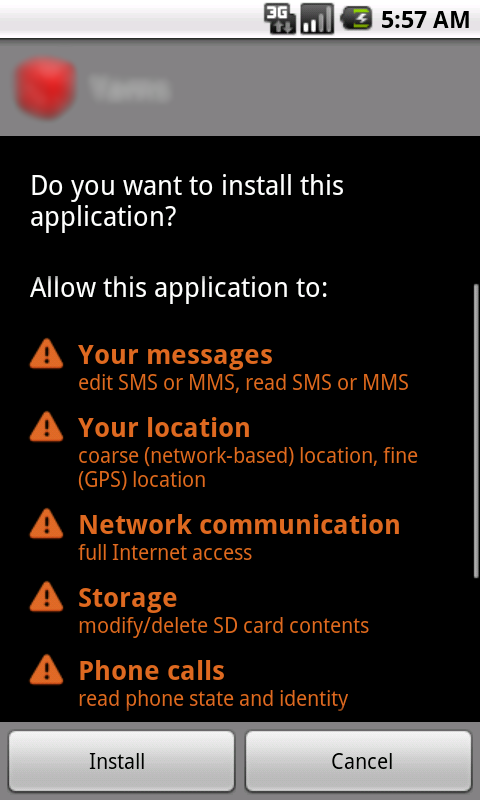 Prior to installation, this new variant of the DroidKungFu family requests the following permissions: