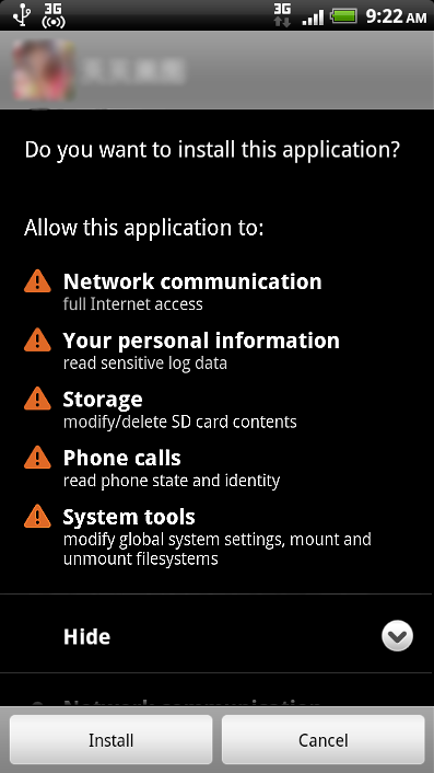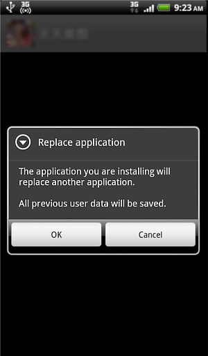 The user can choose not to confirm the update and just press the phone's back button. The trojan however still proceeds to silently download the application package and save it in the device's SD card, all without the user's consent.