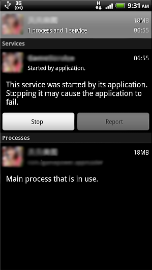 Trojan:Android/GinMaster.A starts a service in the background.