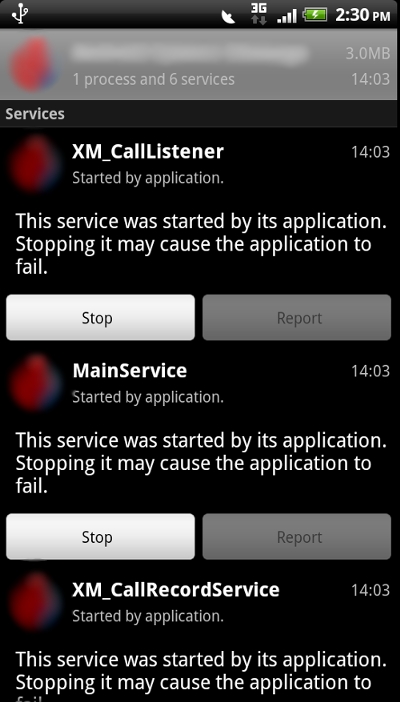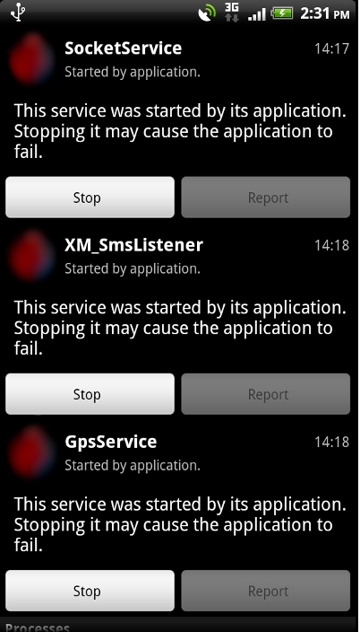 Screenshots 3 and 4: Services started by Trojan:Android/Nickispy.A