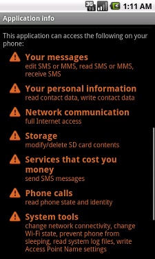Placsms.A appears as 'sp_pay' on the application menu. During the installation process, it requests for permissions that will allow it to access internet, SMS messages, SD card contents, and the device's system.