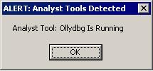 It then actively monitors running analysis tools.It then displays the message box: