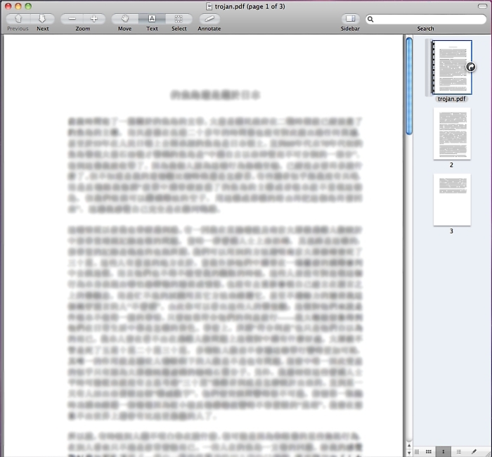 Screenshot of a PDF file dropped by Trojan-Dropper:OSX/Revir.A.