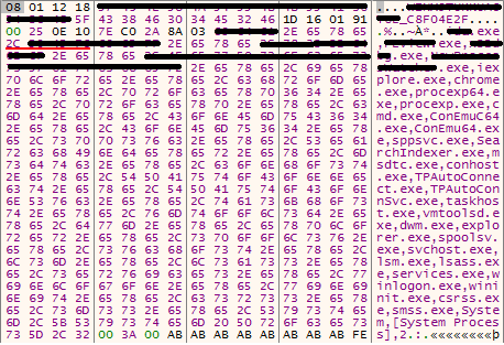 It encrypts the following data using an RSA public key, which is present inside the file, then sends the encrypted data to the C&C; server: