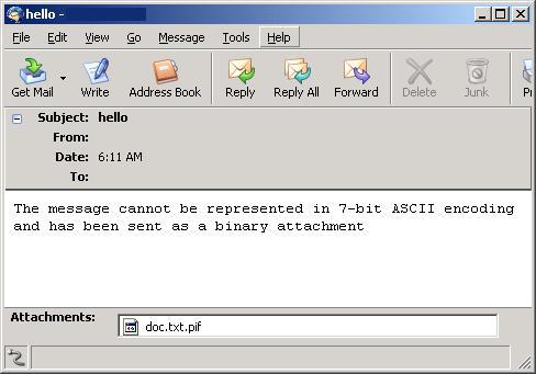 • The message cannot be represented in 7-bit ASCII encoding and has been sent as a binary attachment.
