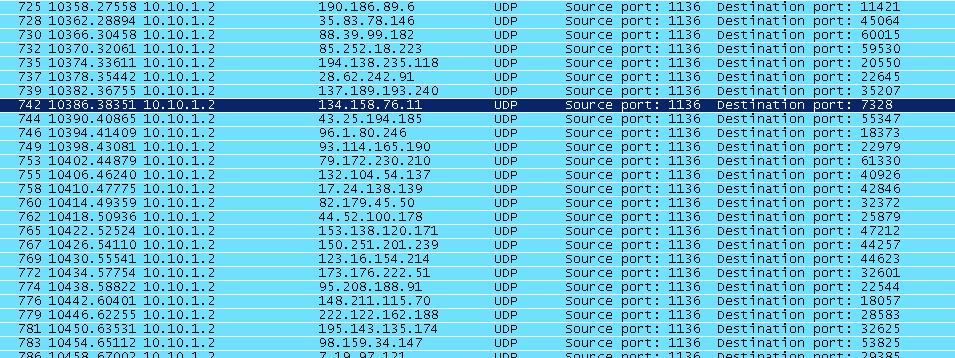 The worm connects itself to a peer-to-peer network. A significant number of UDP connections can be observed when the worm is attempting to connect to its P2P network..